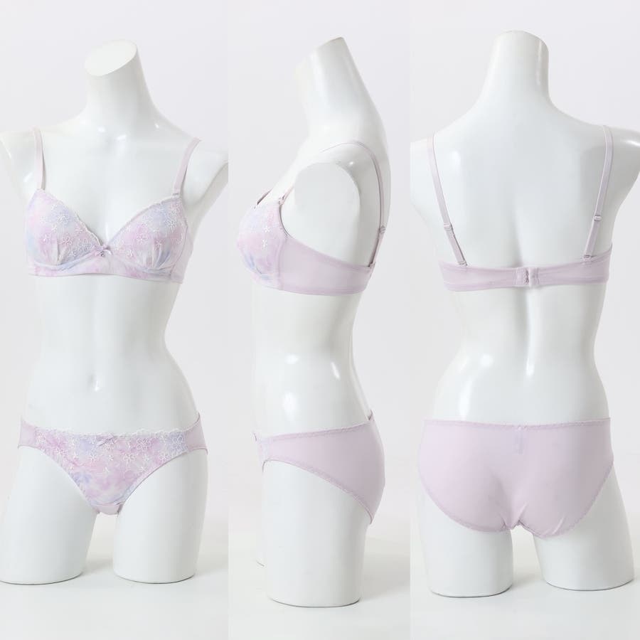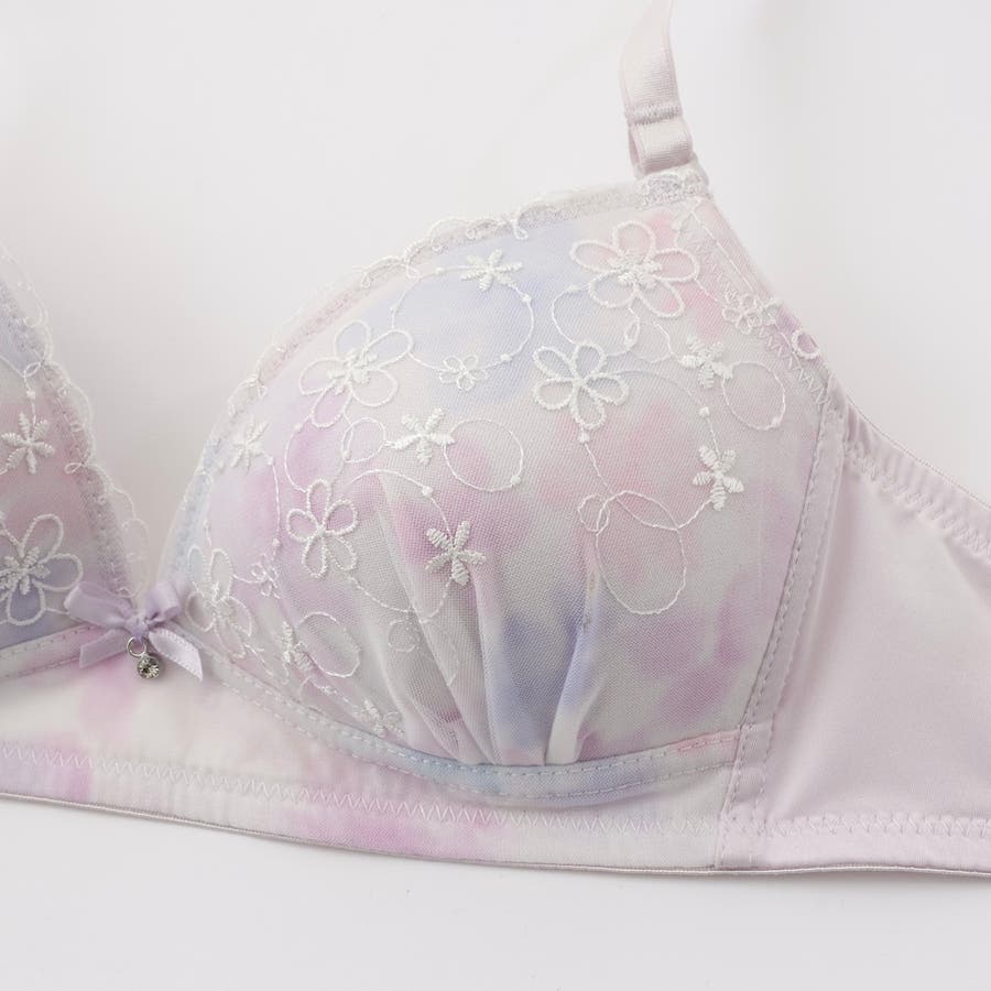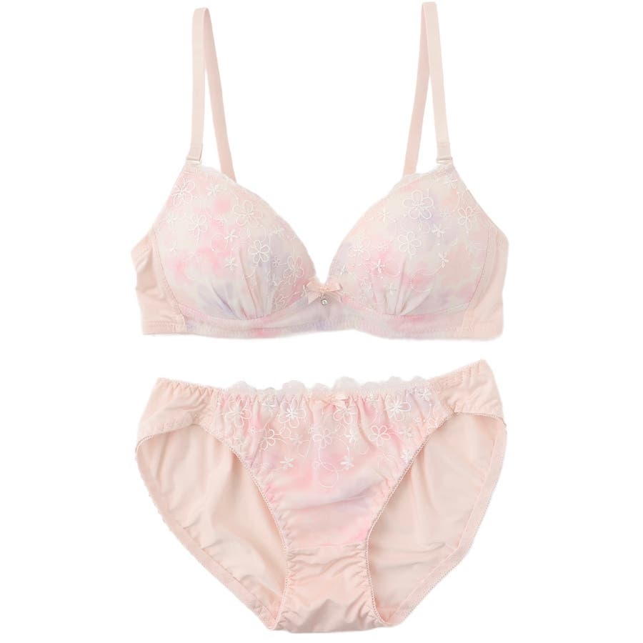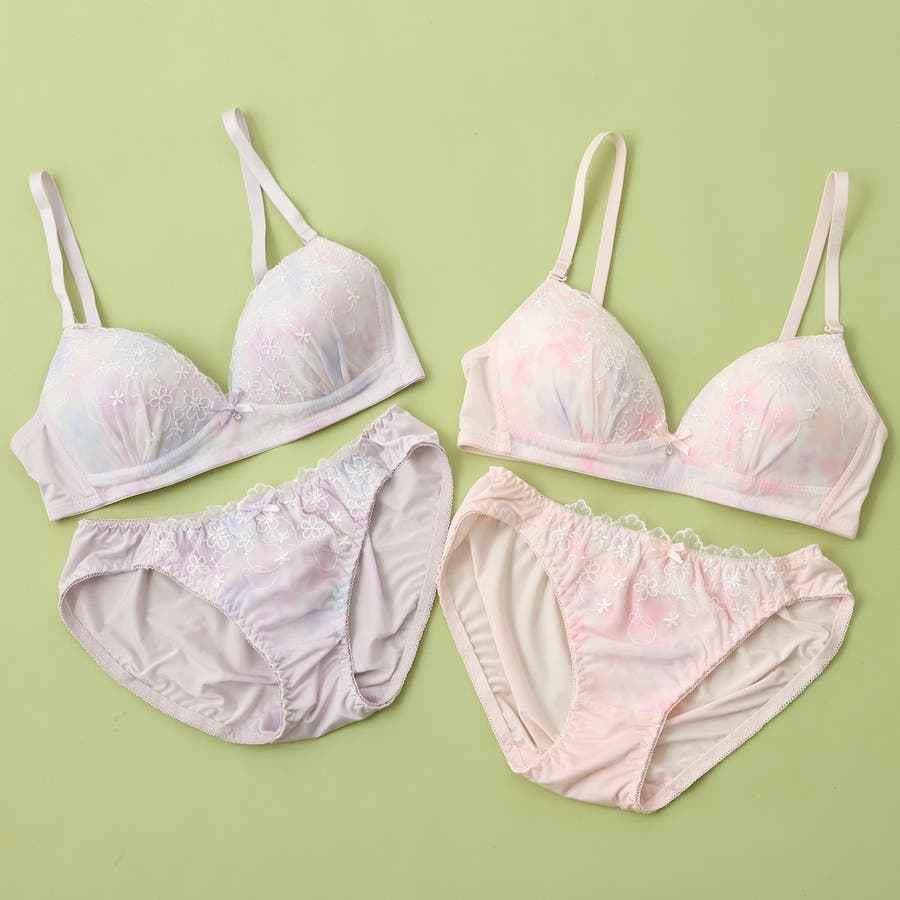 大好評”ノンワイヤーシリーズ”水彩花柄パステルカラーのプリントが可愛いノンワイヤーブラとショーツの下着セットです。
