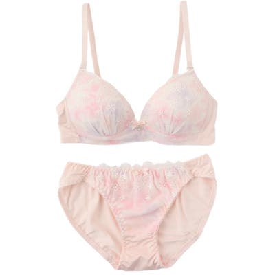 【ノンワイヤー】パステルフラワープリント ノンワイヤーブラ&ショーツ