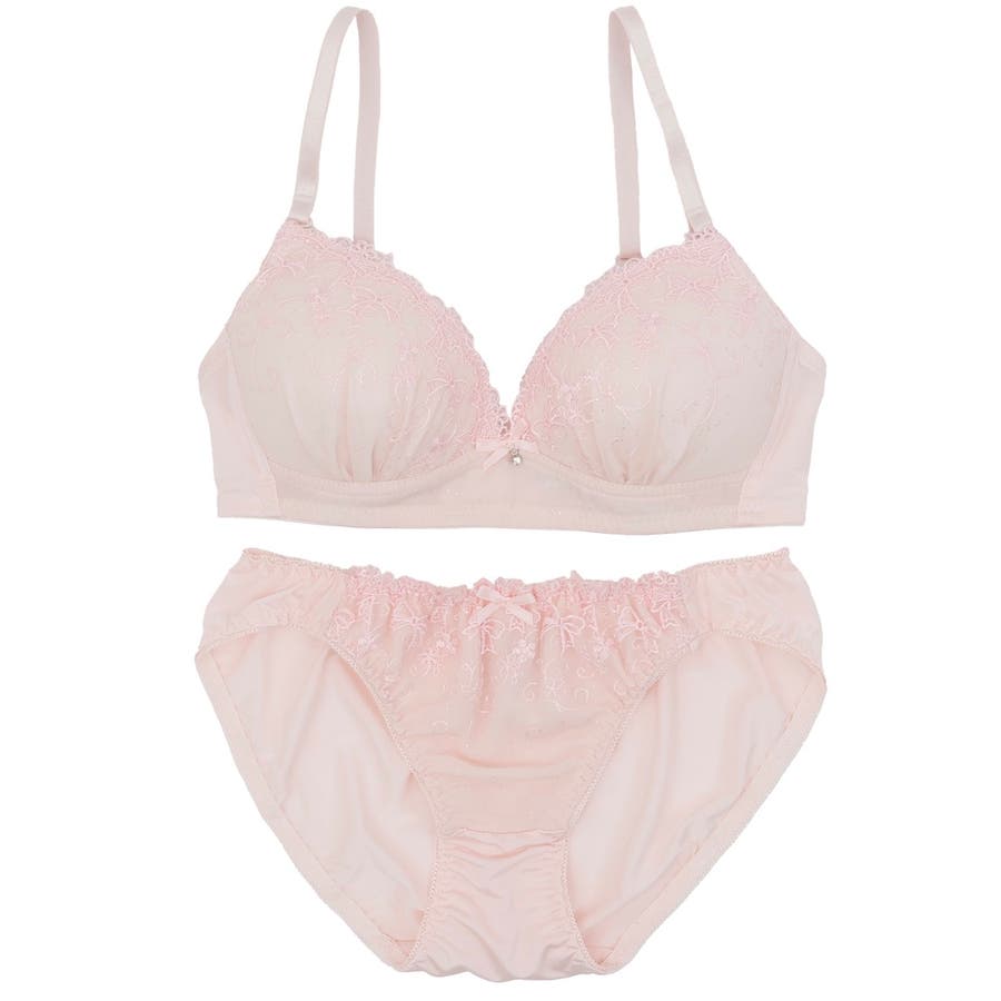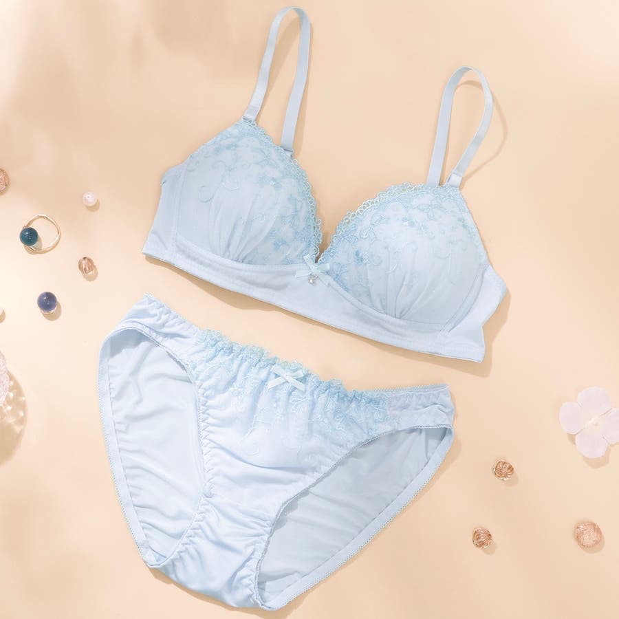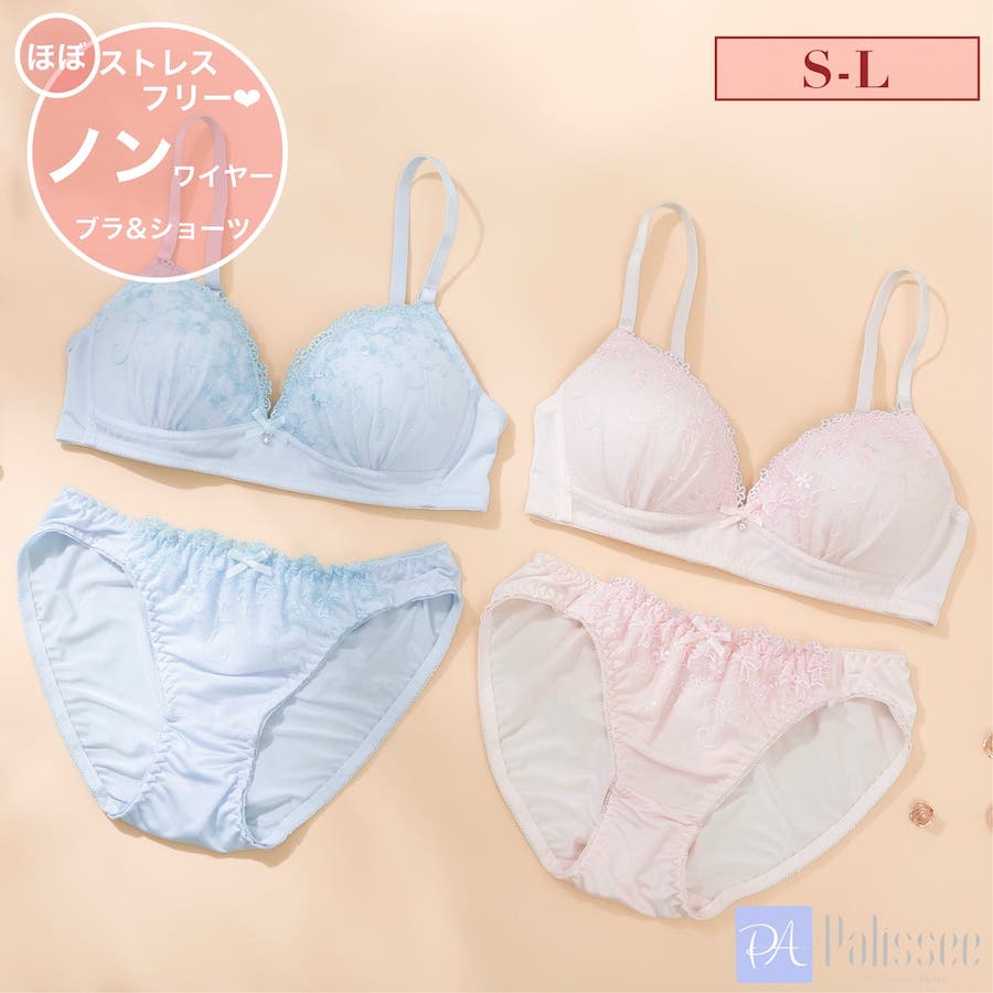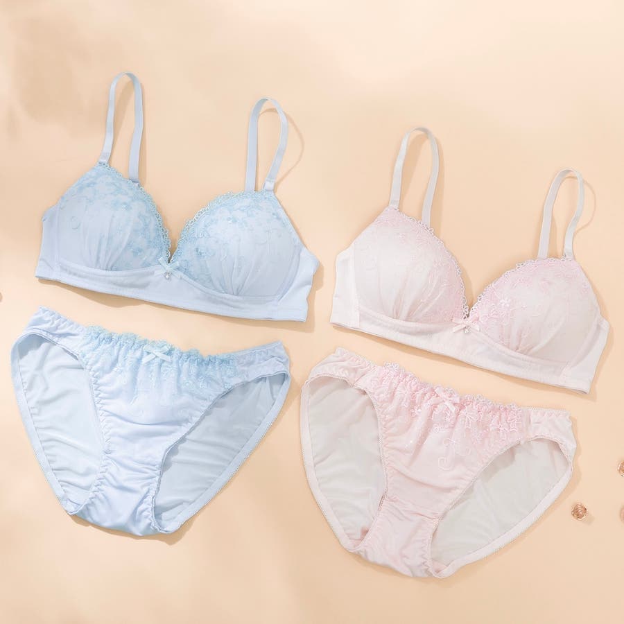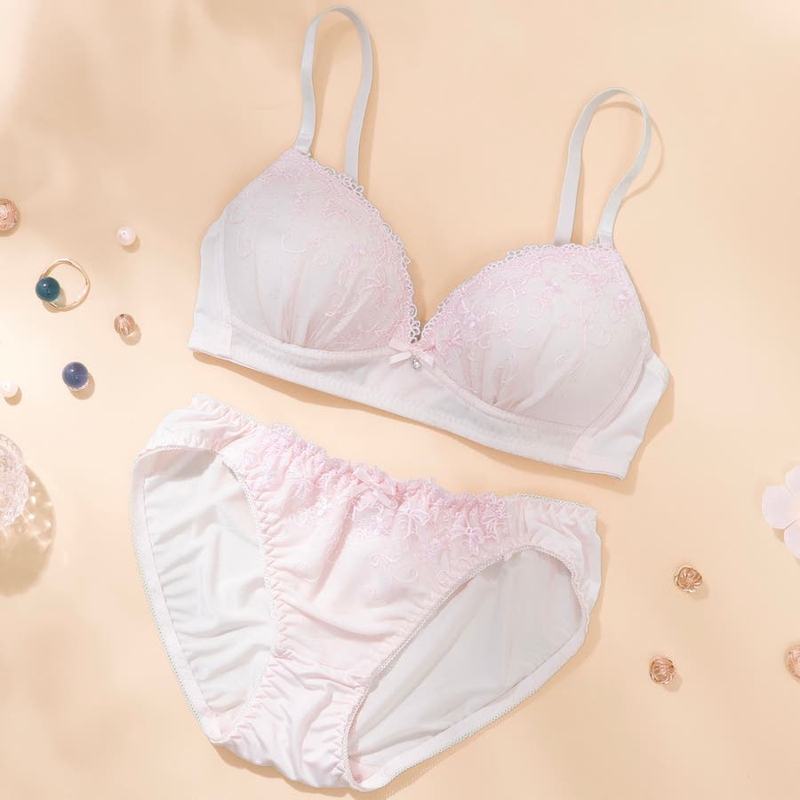 【ノンワイヤー】リボン刺繍ノンワイヤーブラ&ショーツ