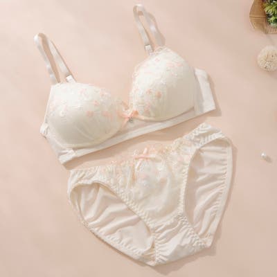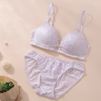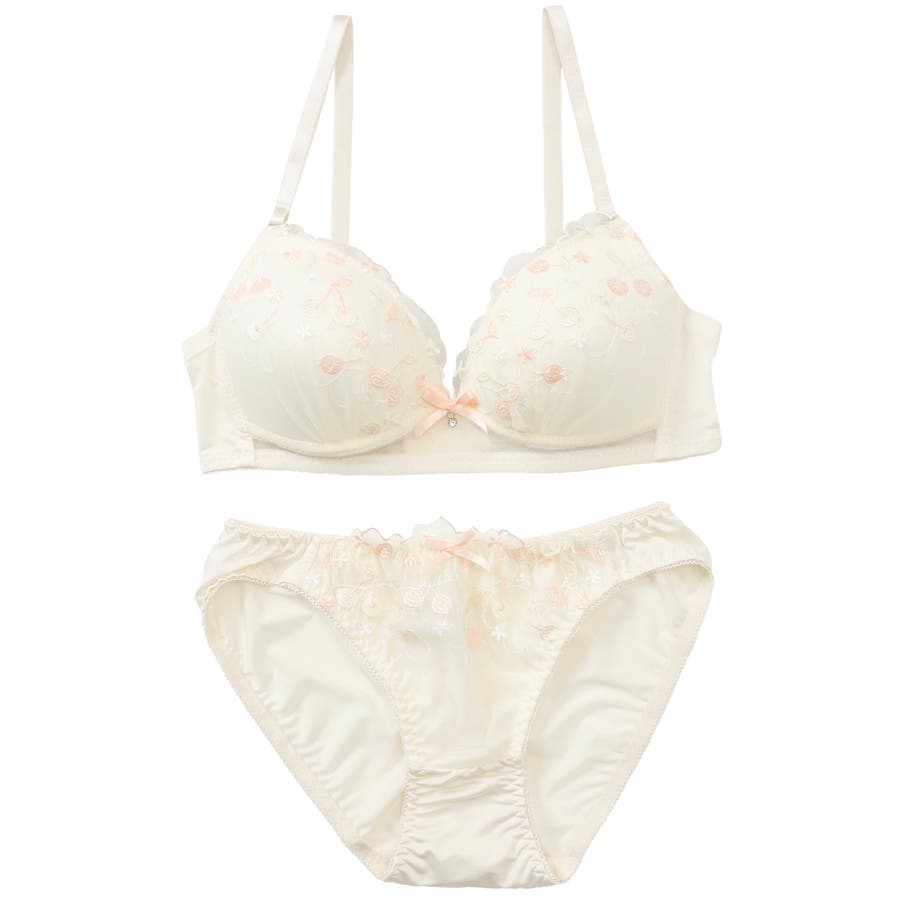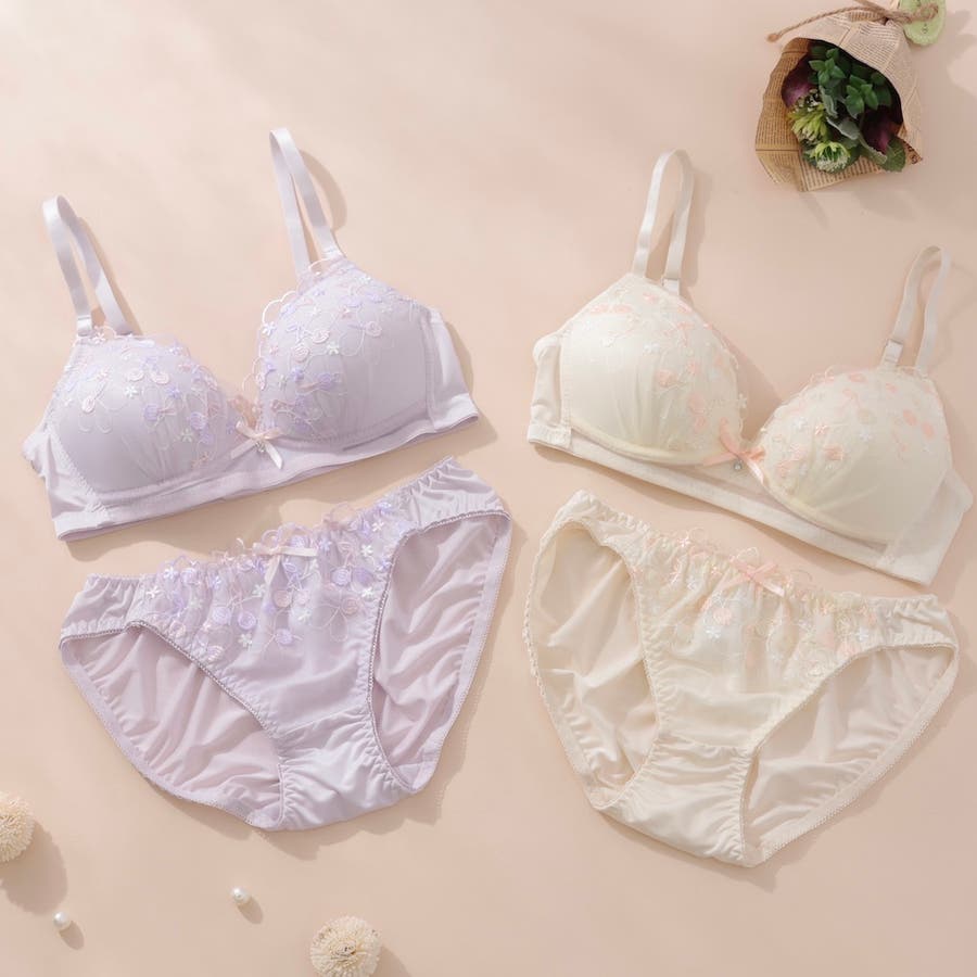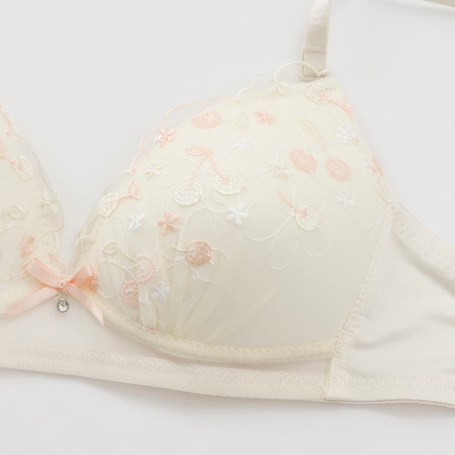 大好評”ノンワイヤーシリーズ”チェリーの刺繍がとっても可愛いらしいガーリーなノンワイヤーブラとショーツの下着セットです。ワントーンカラーで普段使いにもピッタリ!