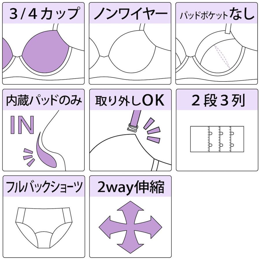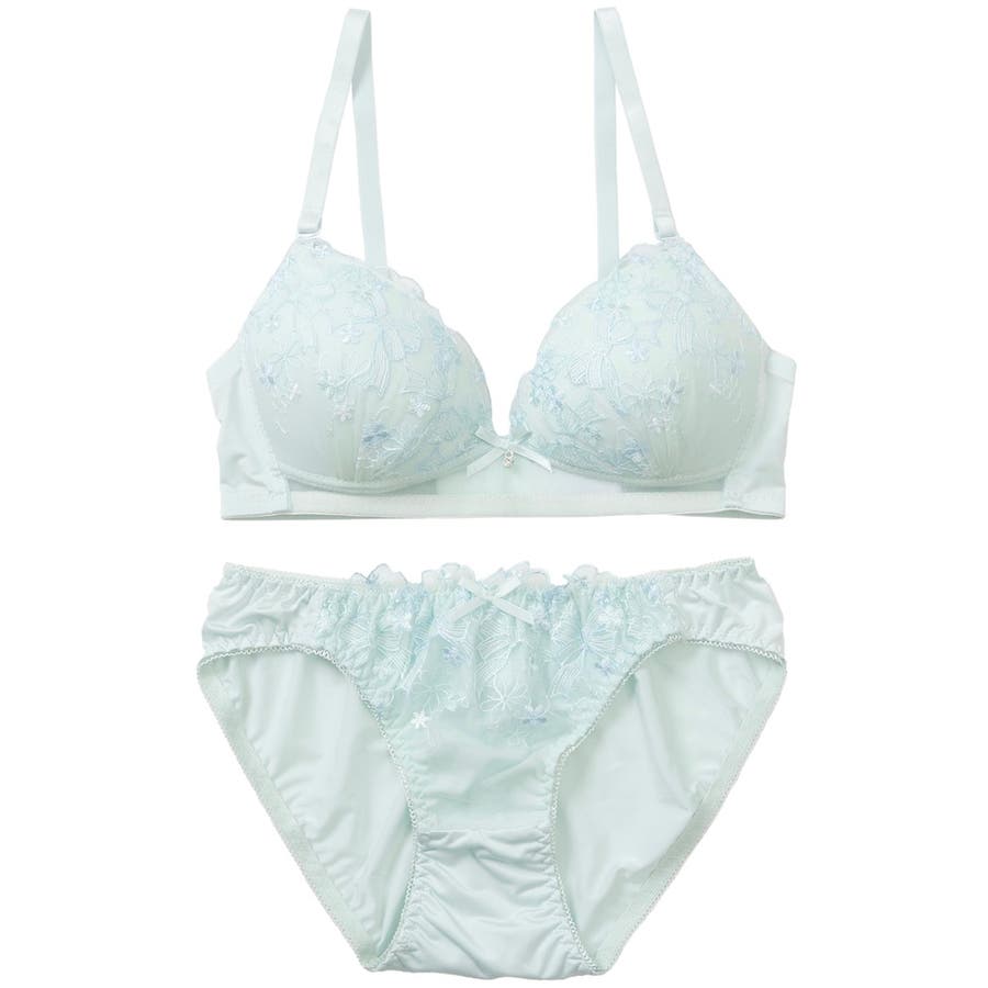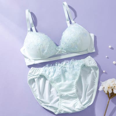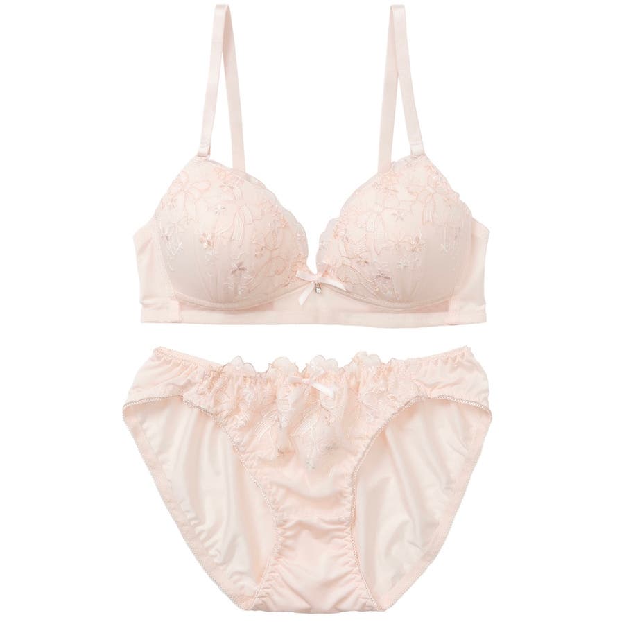 大好評”ノンワイヤーシリーズ”リボンとお花の刺繍でガーリーな雰囲気に!デイリー使いもぴったりなノンワイヤーブラとショーツの下着セットです。ワントーンカラーで普段使いにもピッタリ!