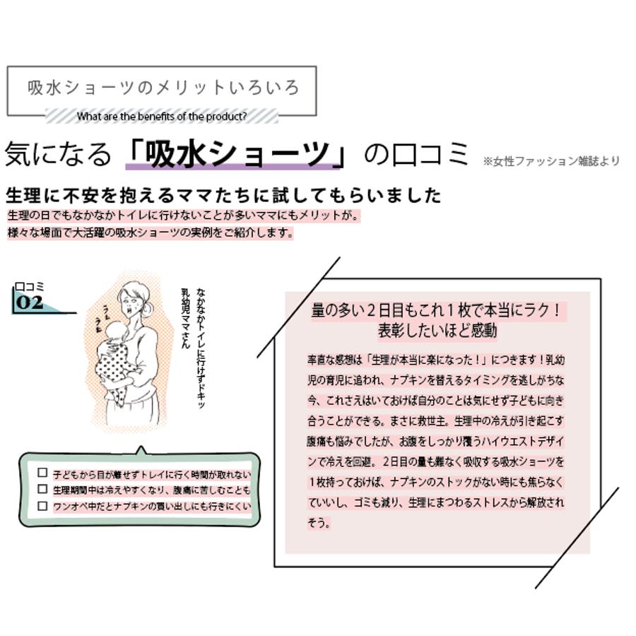 吸水パッド部分は吸水素材、吸水拡散素材、保水素材、防水布の4段構造に加え、日本製の資材を使用し安心しておりますので安心してご使用いただけます。