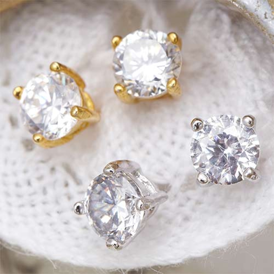 シルバー925製ポスト スタッドピアス 1粒ストーン