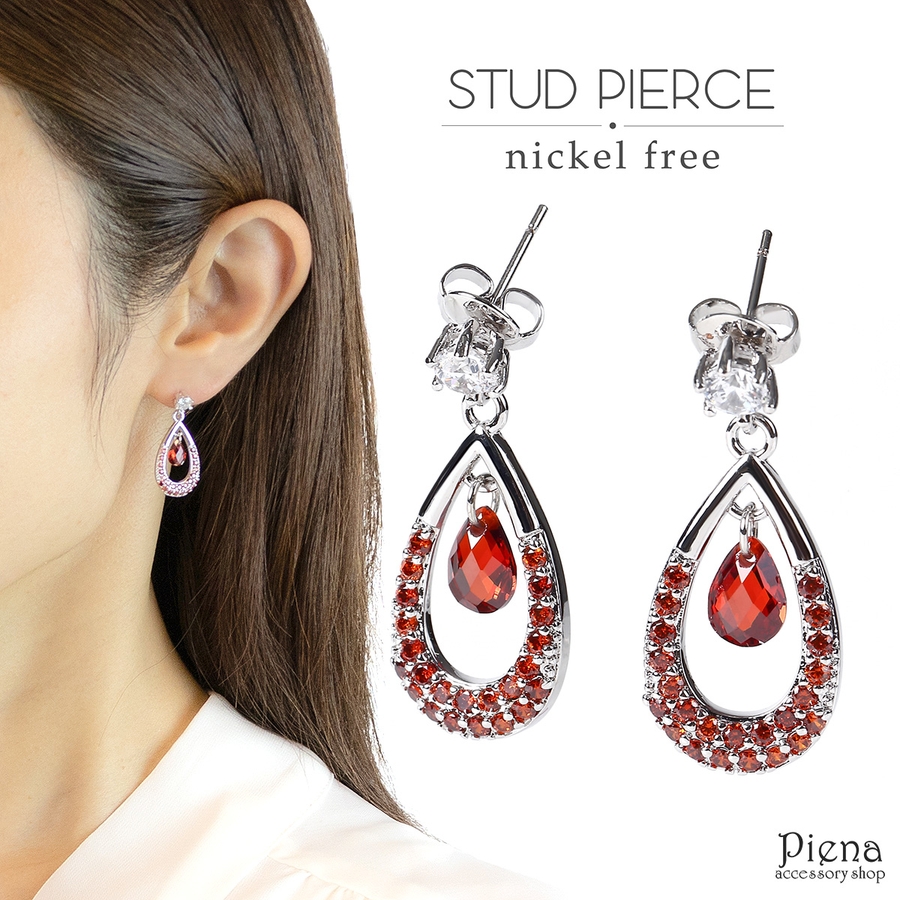 ドロップ型モチーフにガーネット、カラージルコニアをセットしたスタッドピアス
