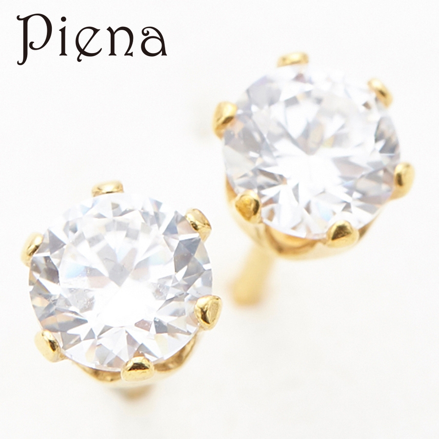 6本爪留めのシンプルなキュービックジルコニア1石ピアスです。