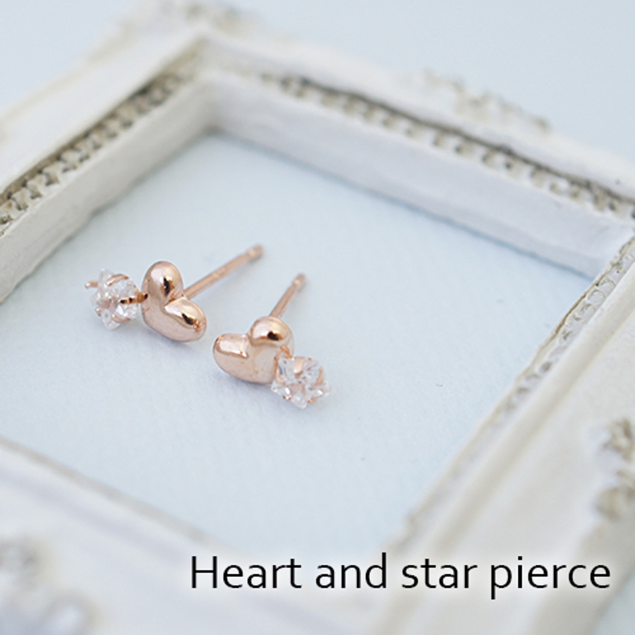 10金ピンクゴールドのハートにホワイトのキュービックジルコニアが輝くピアス