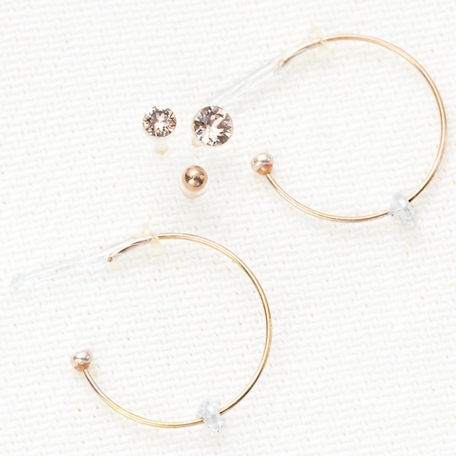 極細のワイヤーフープにストーンをあしらったフープピアスのセットです。