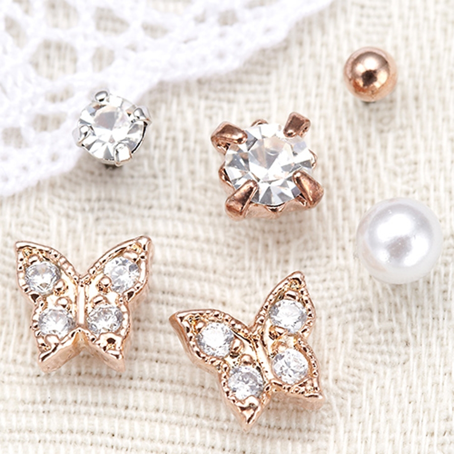 キラキラ可憐に輝いて、パールピアスや小さなストーン、メタルボールもセットにした、
