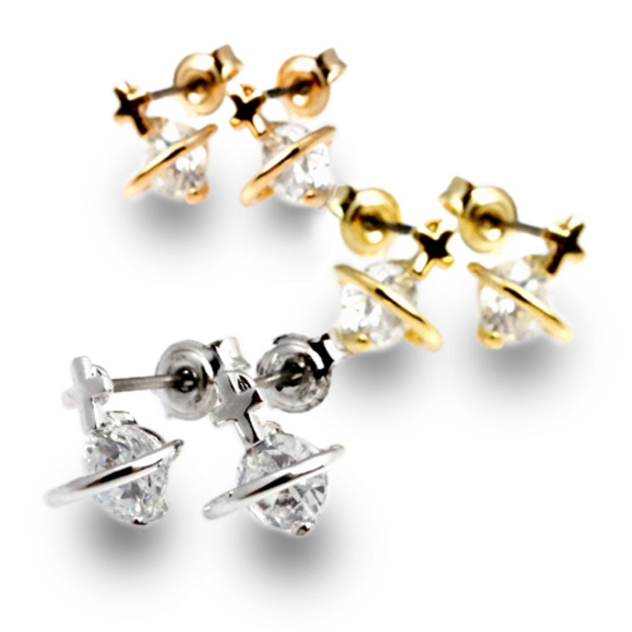 土星[サターン]をイメージさせるクロスにジルコニアをセットしたチタンポストのピア…