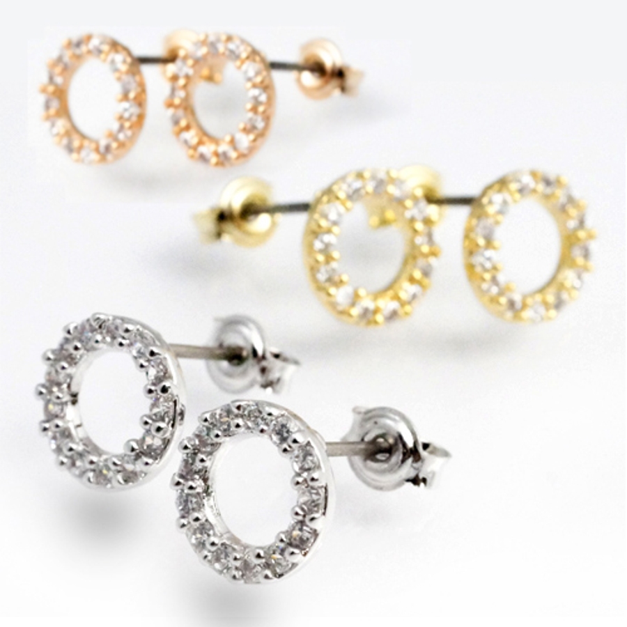 ラウンドの枠にジルコニアを敷き詰めた上品なチタンポストのピアス シルバー ゴールド