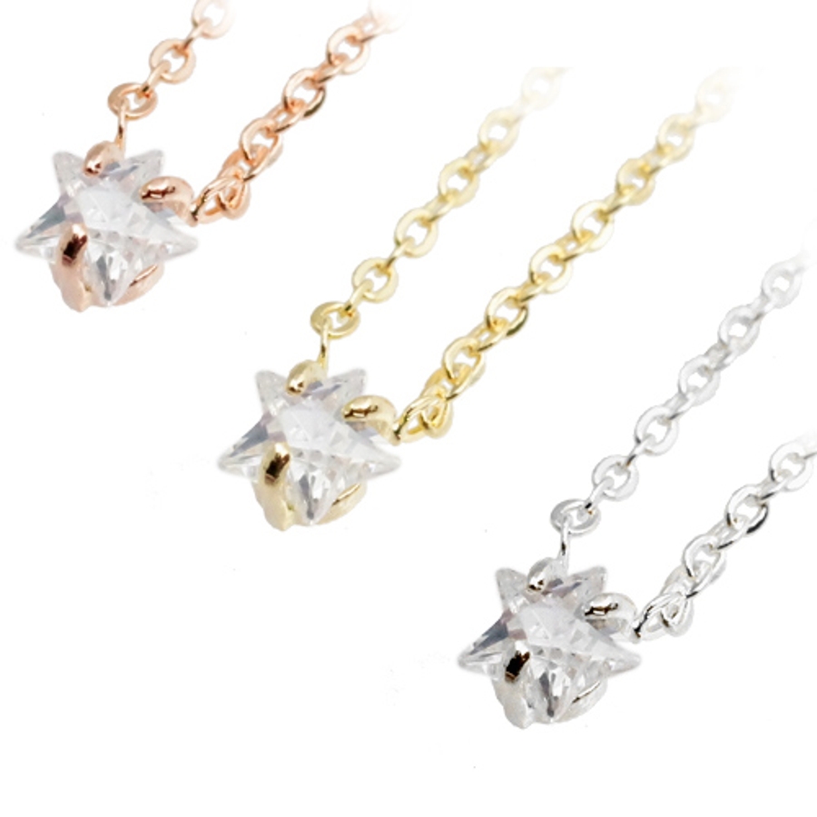 スター型ジルコニアのシンプルな王道スタイル プチペンダントネックレス シルバー