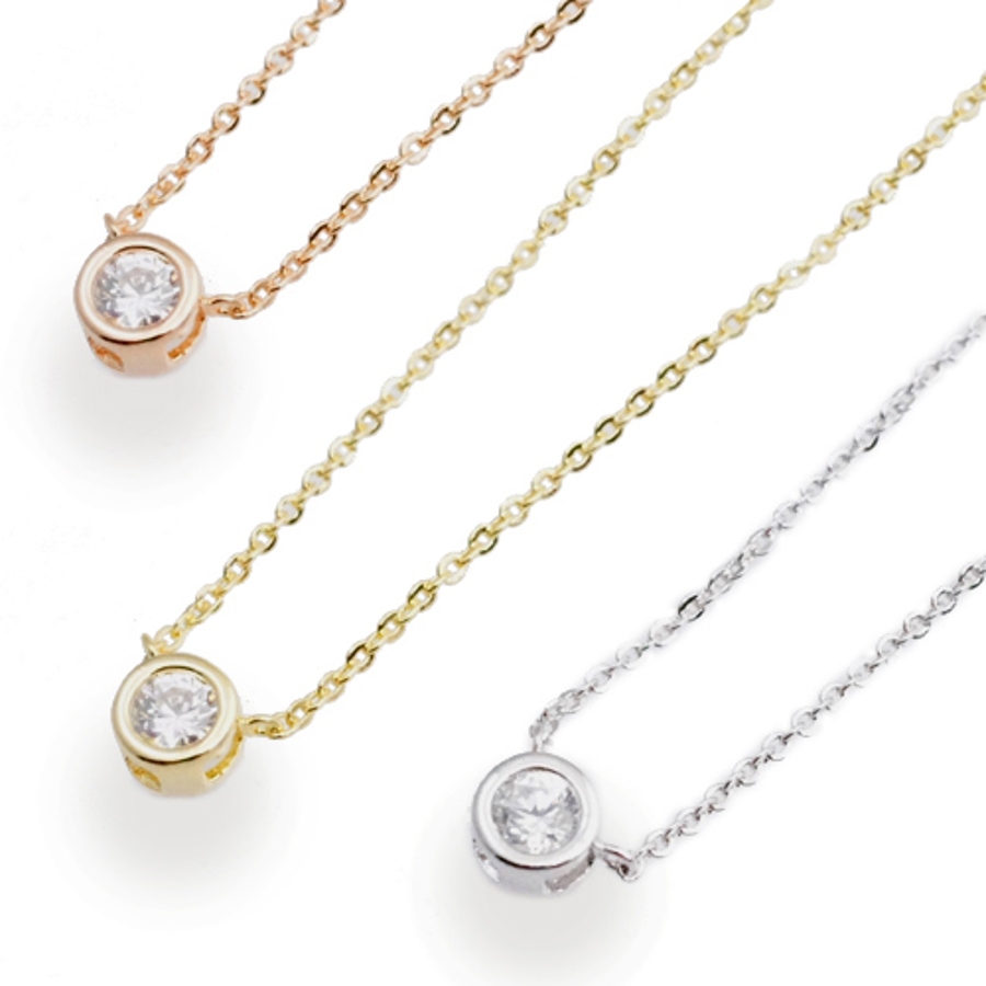 しっかりした枠にジルコニアをセットした王道スタイルのペンダントネックレス