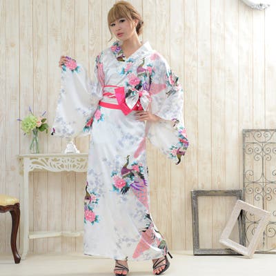 孔雀サテン和柄ロング着物ドレス 和柄 衣装