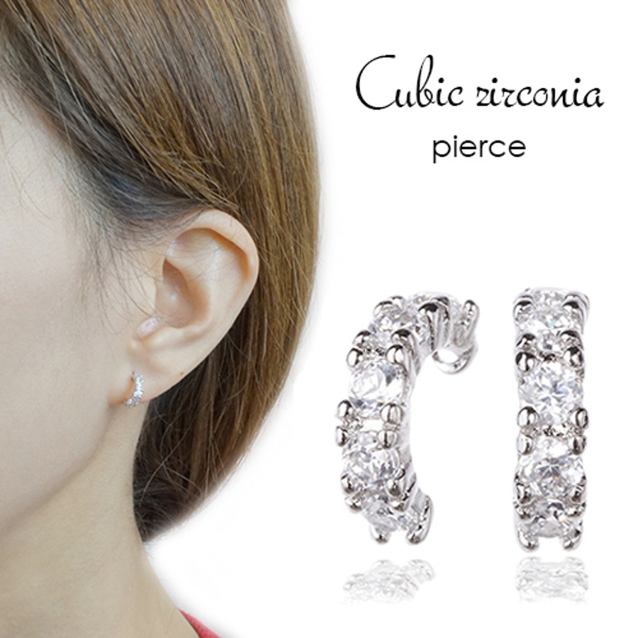 キュービックジルコニア 煌く光のライン C型ピアス チタン製ポスト