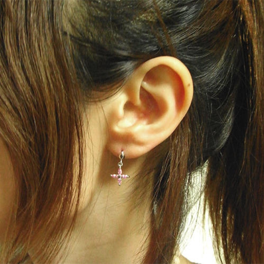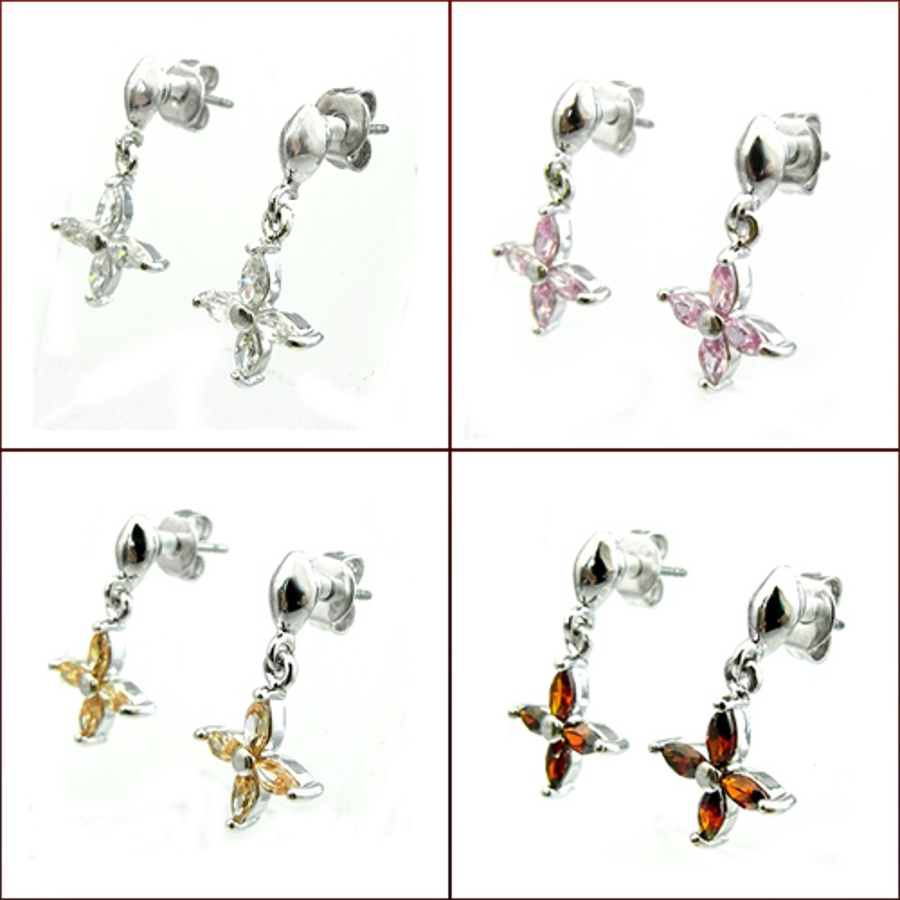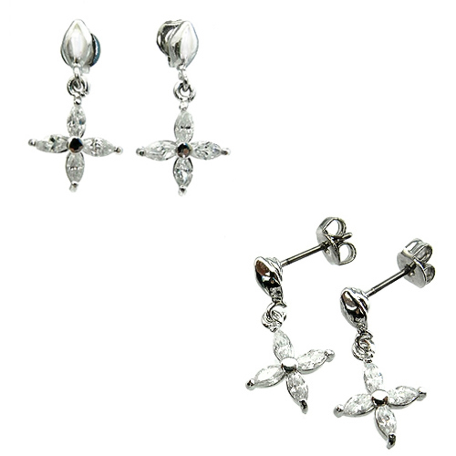 キュービックジルコニア クロスフラワー ピアス チタンポスト