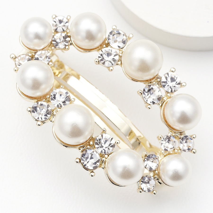 2サイズのパールとストーンが楕円形を描くように交互に並んだバレッタです。