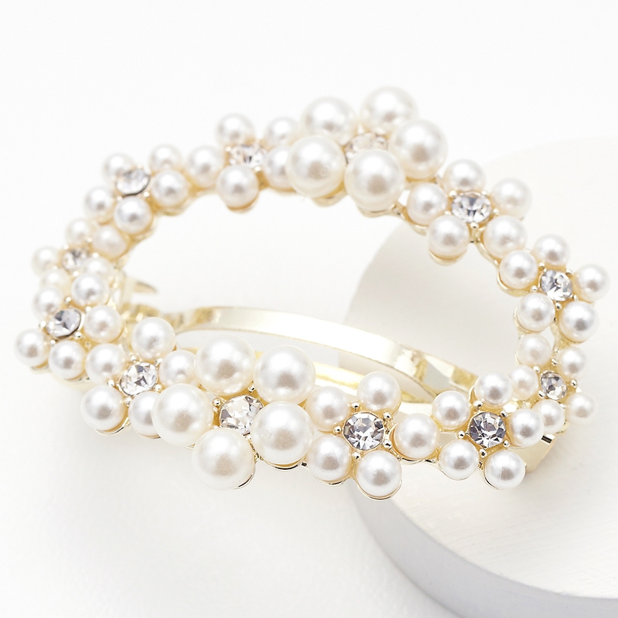 ラインストーンの周りにパールをあしらい、フラワーに模った飾りが可愛らしく、大きすぎないサイズがほど良く存在感があります。