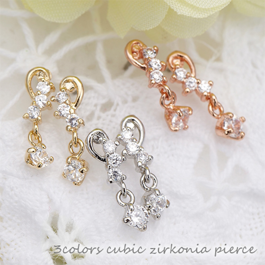 繊細に輝くジルコニアを縦のラインに並べたスタッドフリンジピアス。