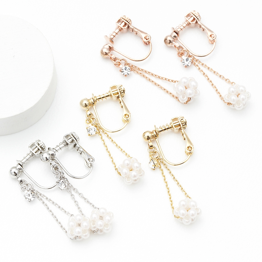 パールで造られたパヴェボールが動くたびに揺れ、1つ着けるだけで耳元を華やかにしてくれます。