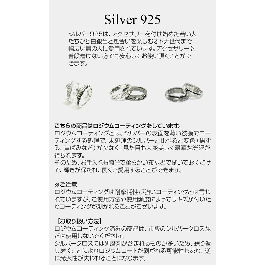 素材シルバー925(ロジウムコーティング、ブラックコーティング)