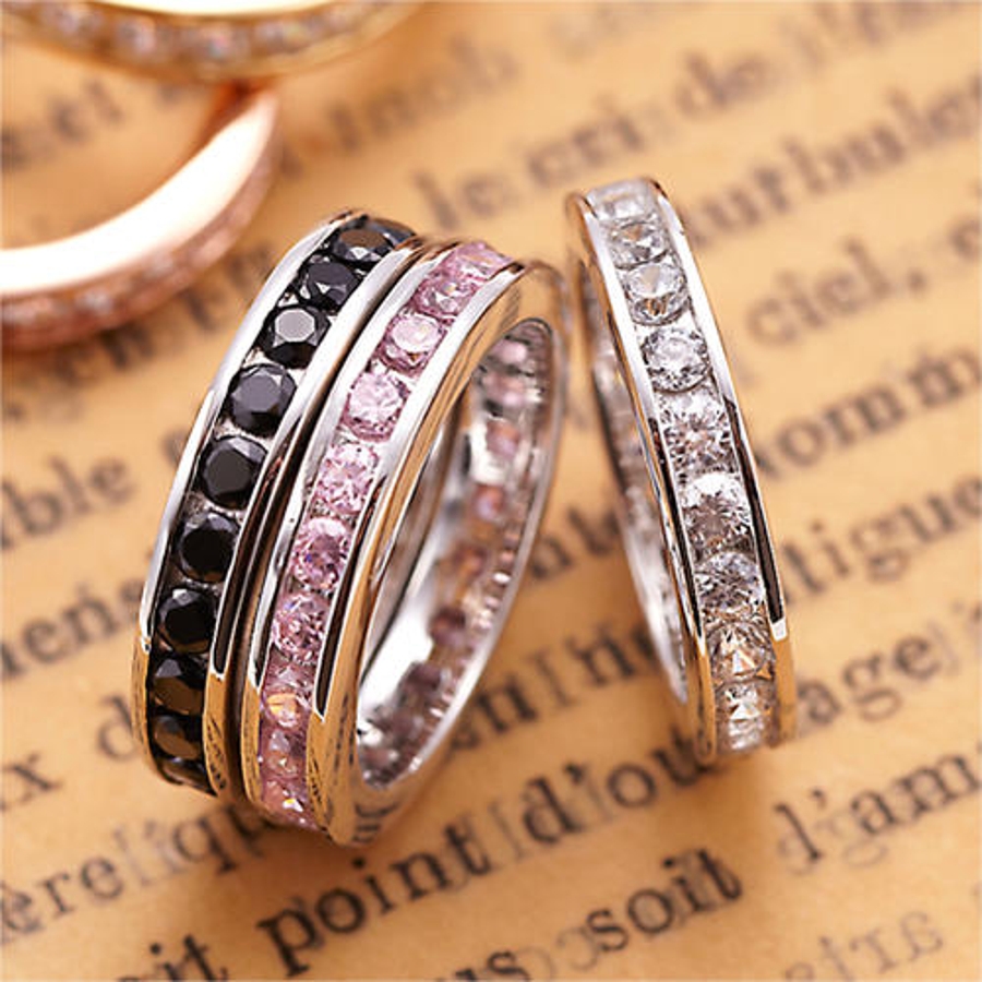 シルバー925キュービックジルコニアフルエタニティリングピンキーリングや男性にも…