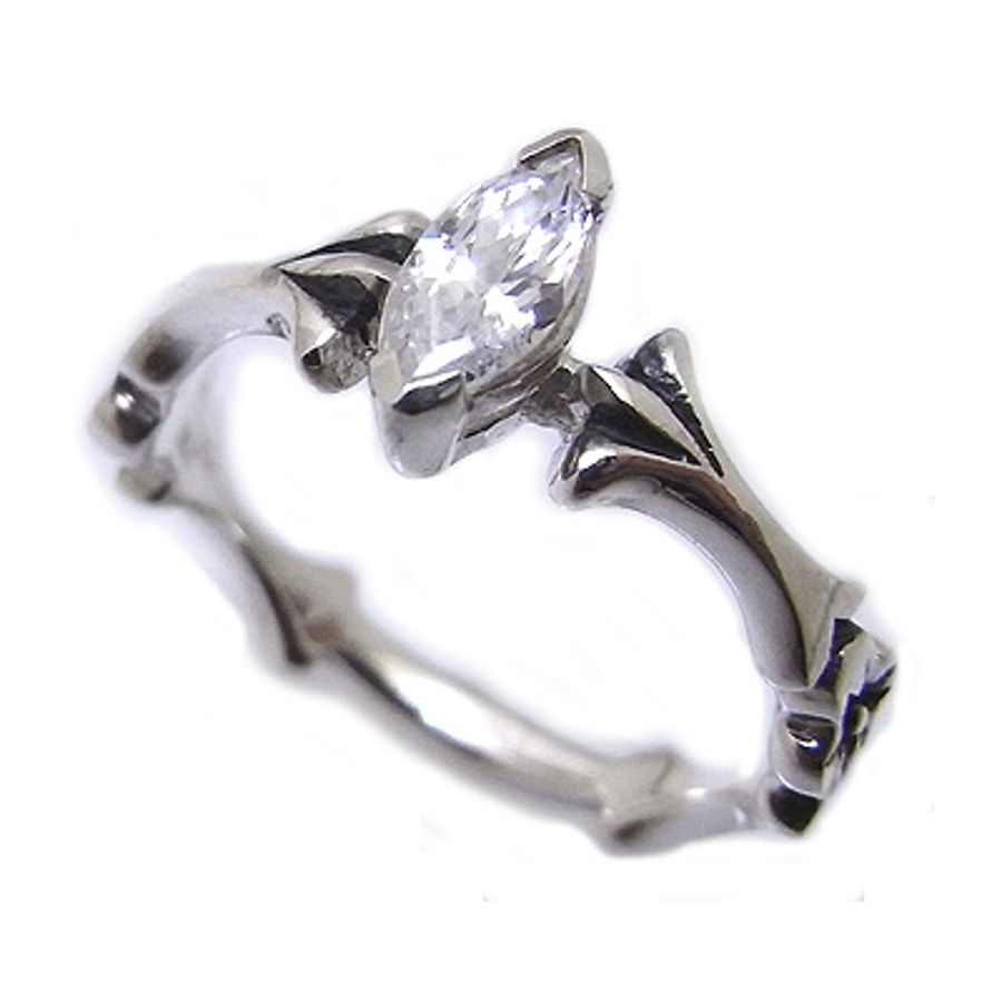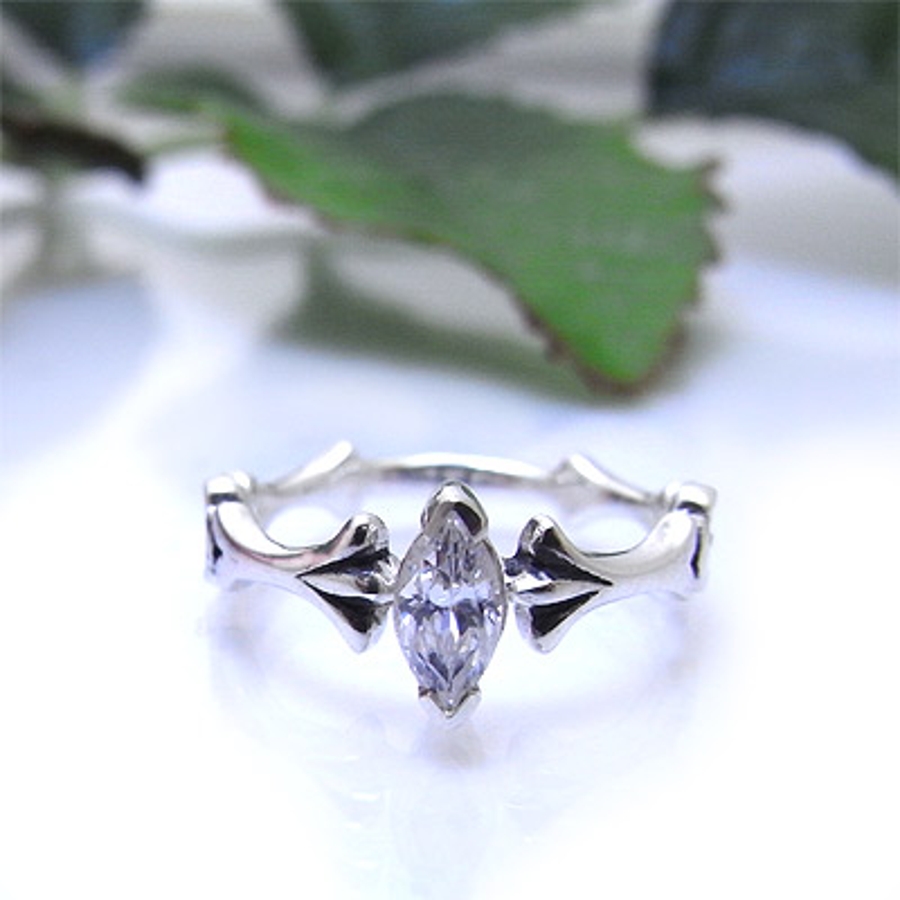 シルバー925キュービックジルコニアマーキースカットのピンキーリング
