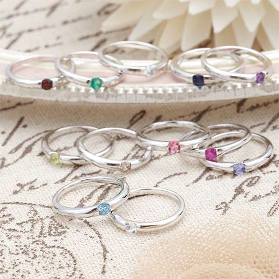 1月ガーネット,2月アメジスト,3月アクアマリン,4月ブラウンダイヤモンド,5月エメラルド,6月ムーンストーン,7月ルビー,8月ペリドット,9月サファイヤ,10月トルマリン,11月トパーズ,12月タンザナイト