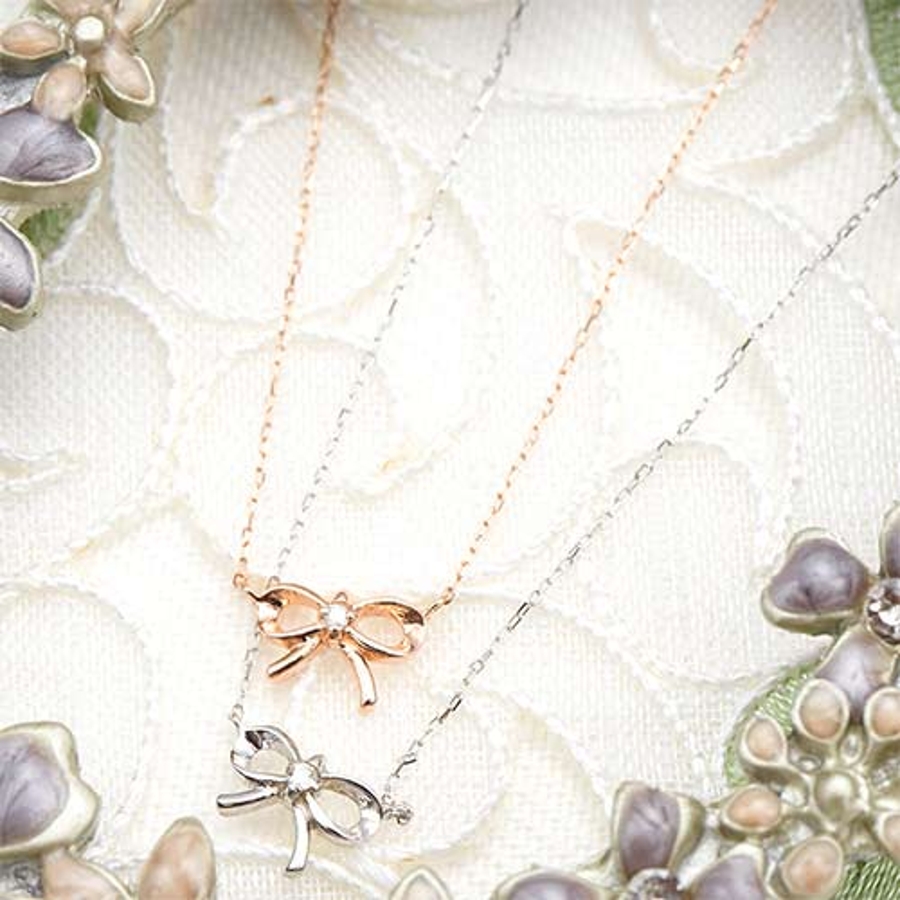 天然ダイヤモンドが輝く リボンモチーフペンダントネックレス
