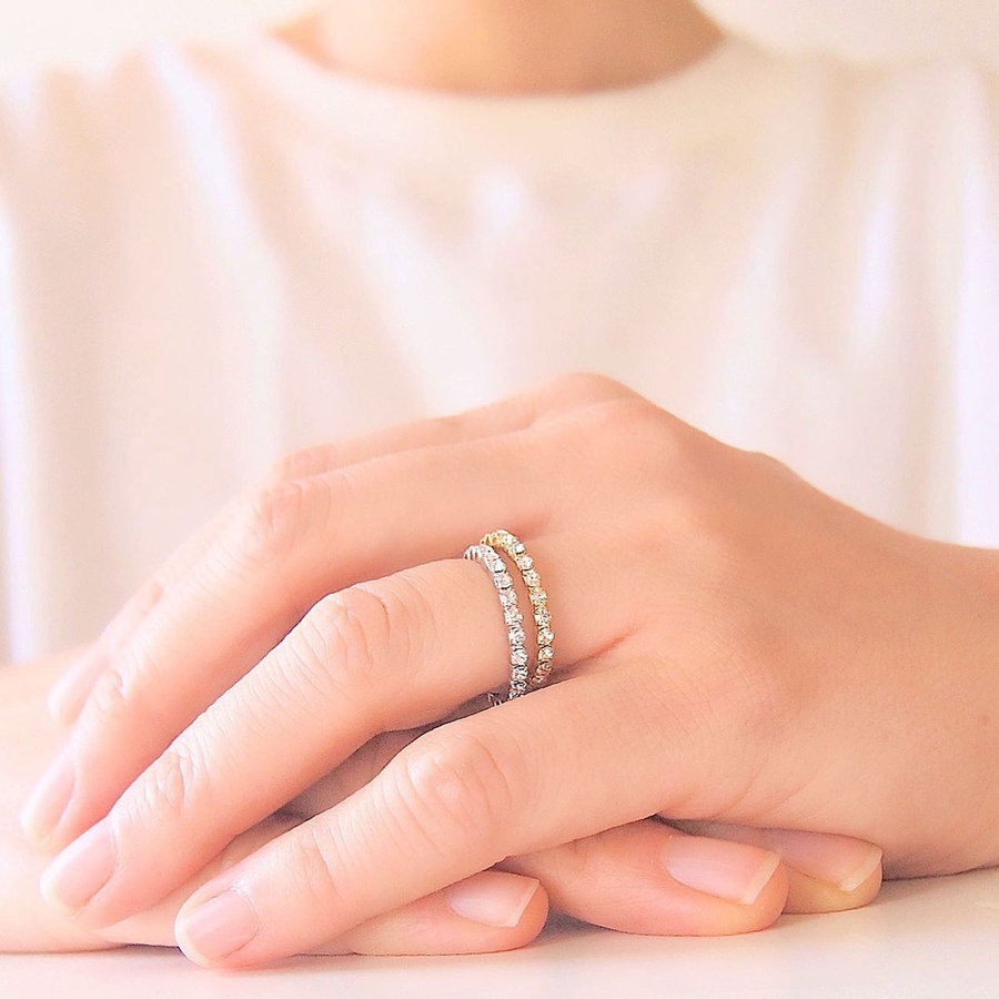 ラインストーンのストライプフルエタニティリング ピンキーリングにも 全12色