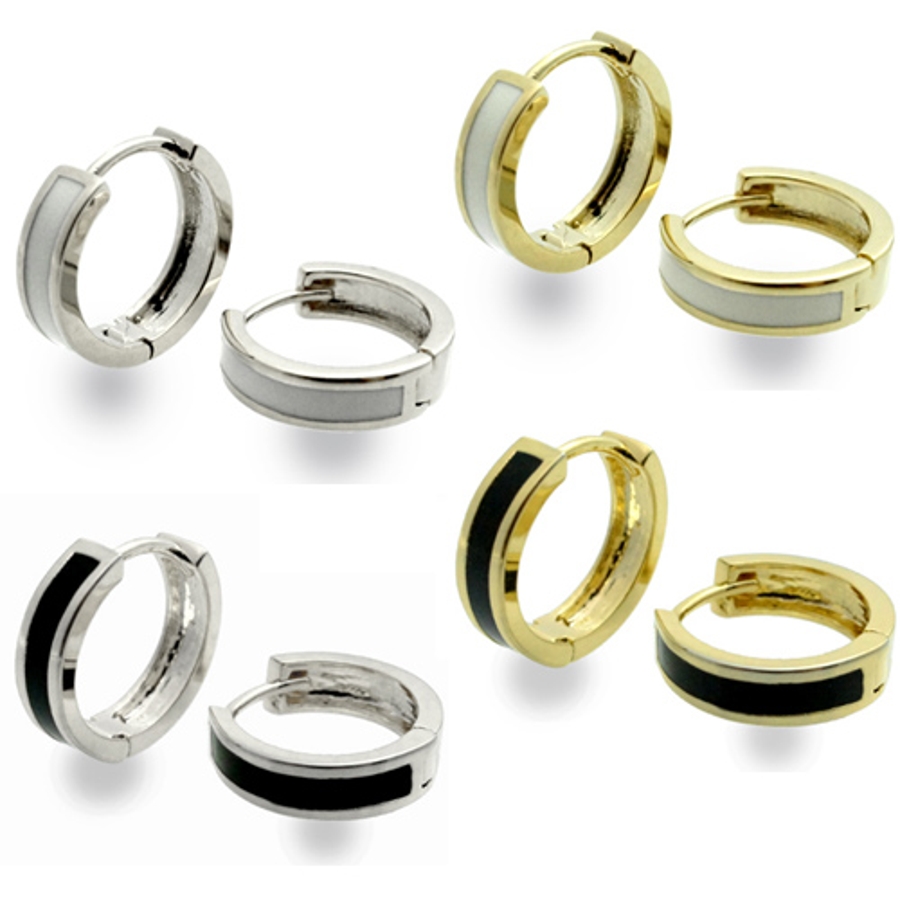カラーエポキシがワンポイントのワンタッチフープピアス 計4色