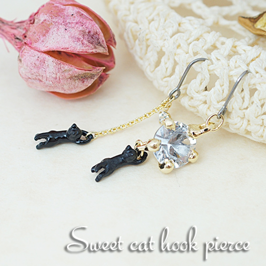 ねこモチーフのフックピアスです。