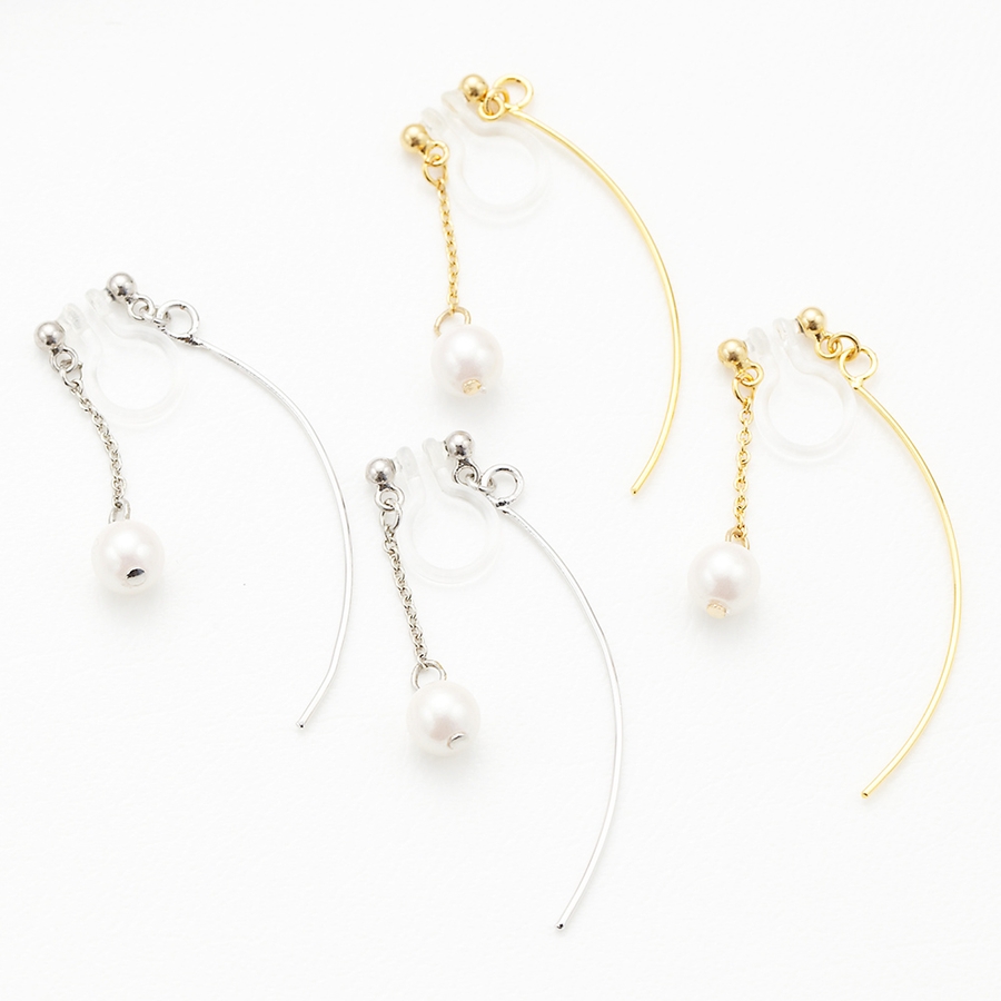 艶感メタルのバーとフリンジするパールのノンホールピアスです。