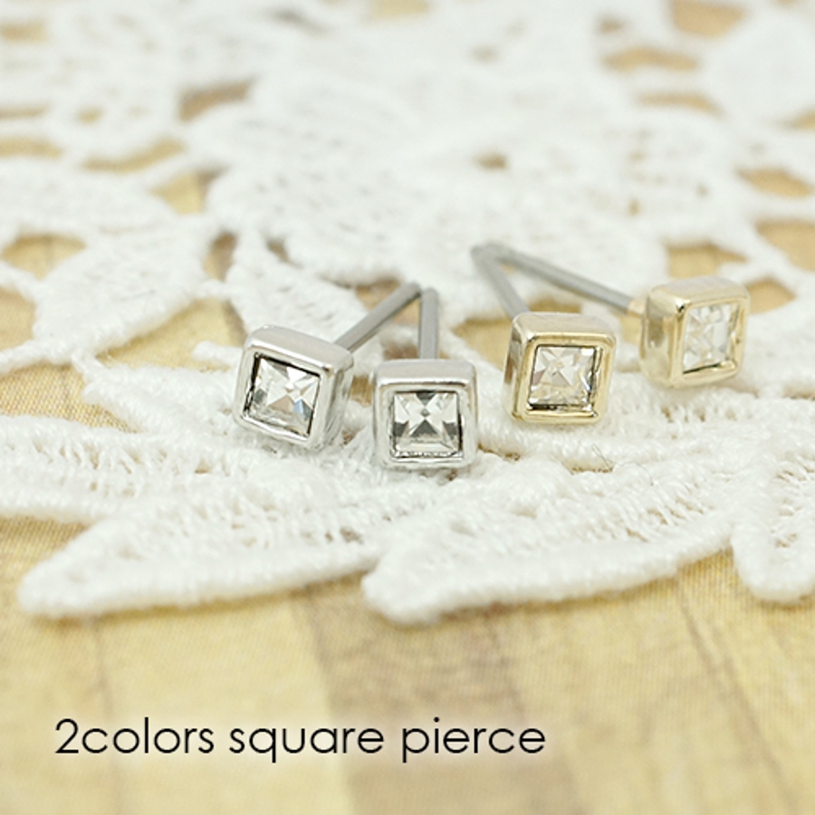 小さなスクウェアピアス ラインストーン スタッドピアス