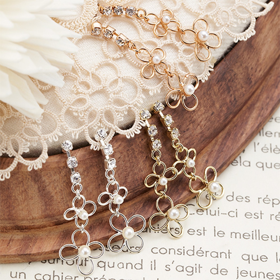 チタン製ポスト 大小のフラワーモチーフがぶら下がったスタッドピアス