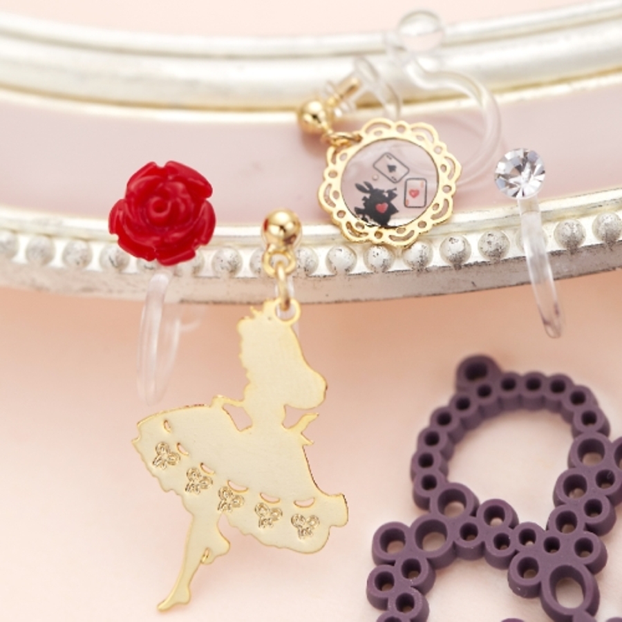 思っていたものよりは華奢に出来ていて小さく感じましたが大好きなアリスのモチーフと大好きな真っ赤な薔薇は身につけるのが楽しみです。ピアスの種類は沢山あってもイヤリングタイプは珍しいので見つけた時は嬉しかったです。