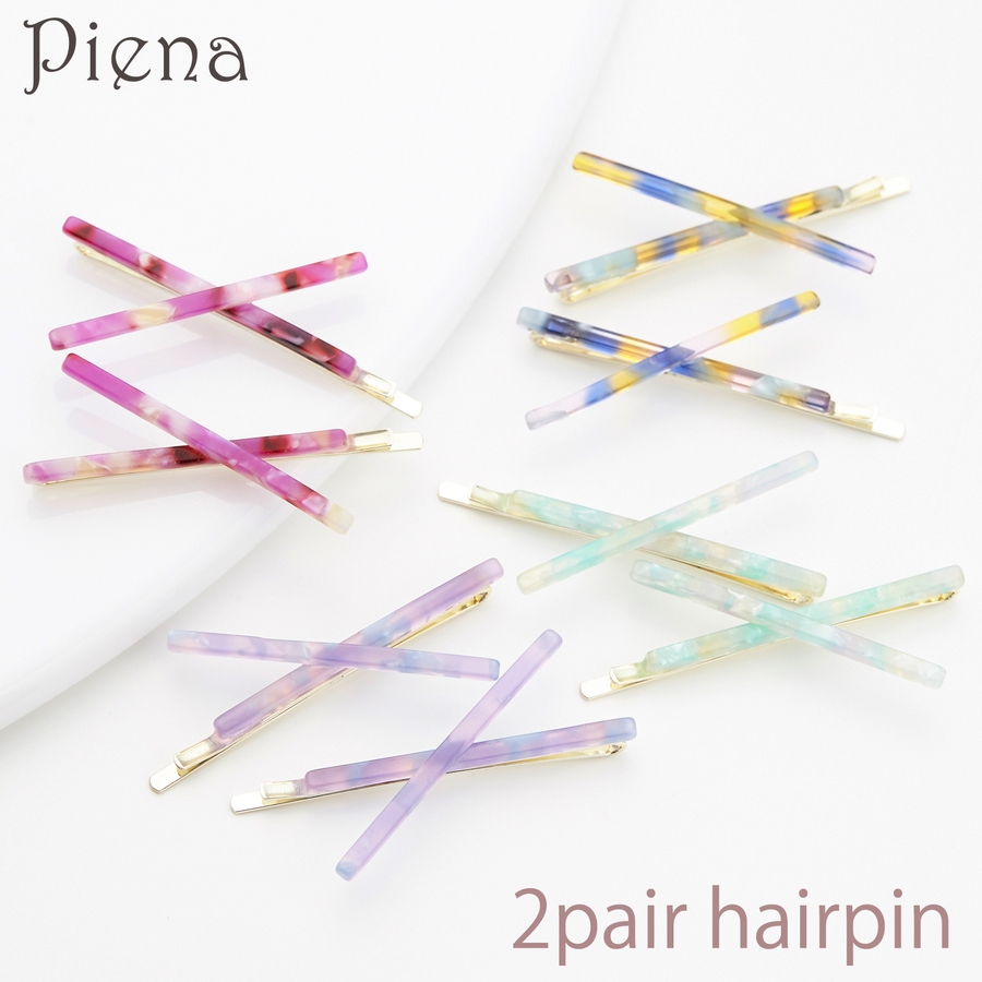 マーブル模様のクロスヘアピン2ペア パステルカラー メタル