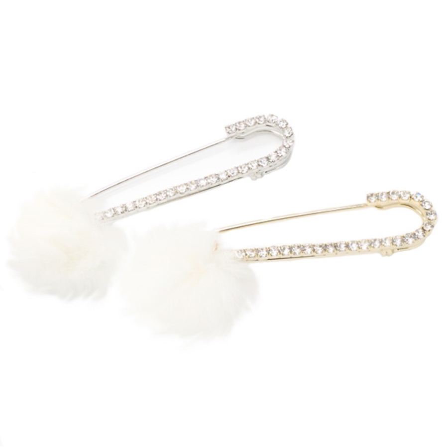 大人気の大きめラインストーンピンブローチにラビットファーをあしらいました。