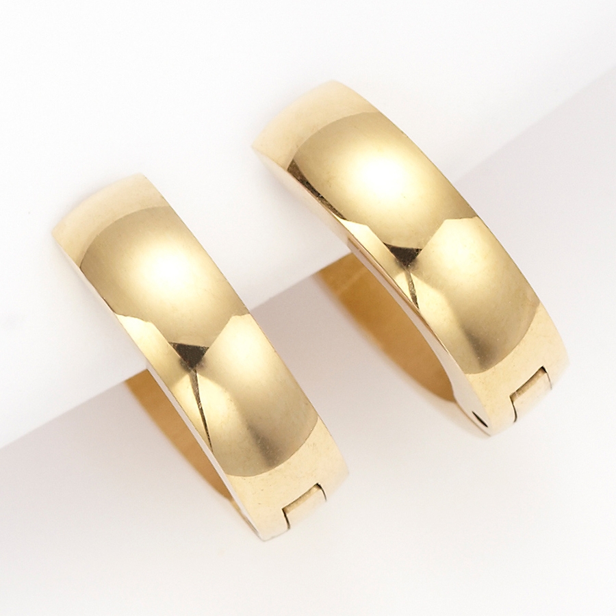 大人らしいシンプルさと上品なアクセント使いになる量感フープスタイル。