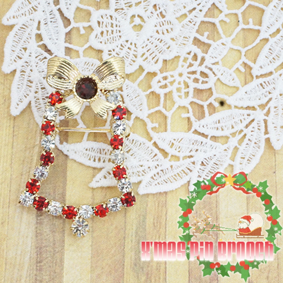 クリスマスベルのフォルムをストーンで象ったコサージュピンバッチ。