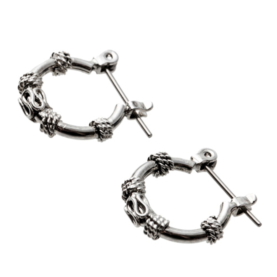 フープピアス メンズ 針金を編み込んだようなモチーフのリングピアス 1個売り
