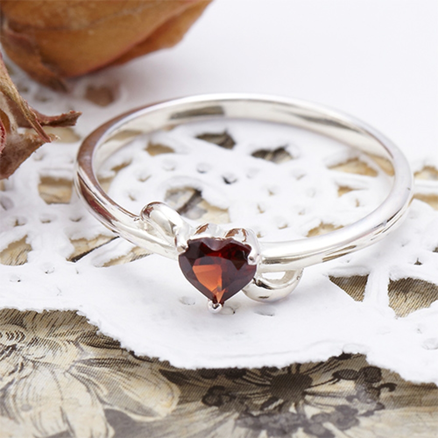一月の誕生石、ガーネットのハートが輝く上品なリングです。