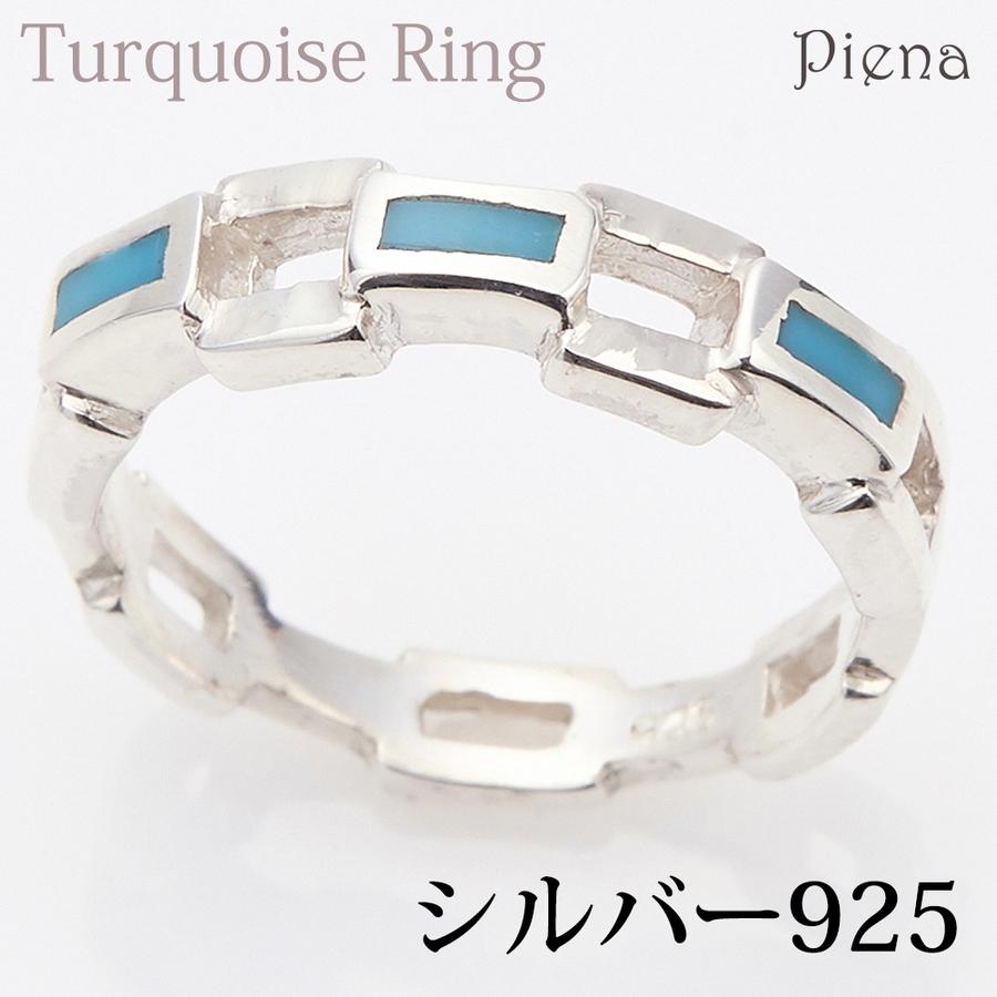 スクエアターコイズシルバー925製リング トルコ石 ブルー