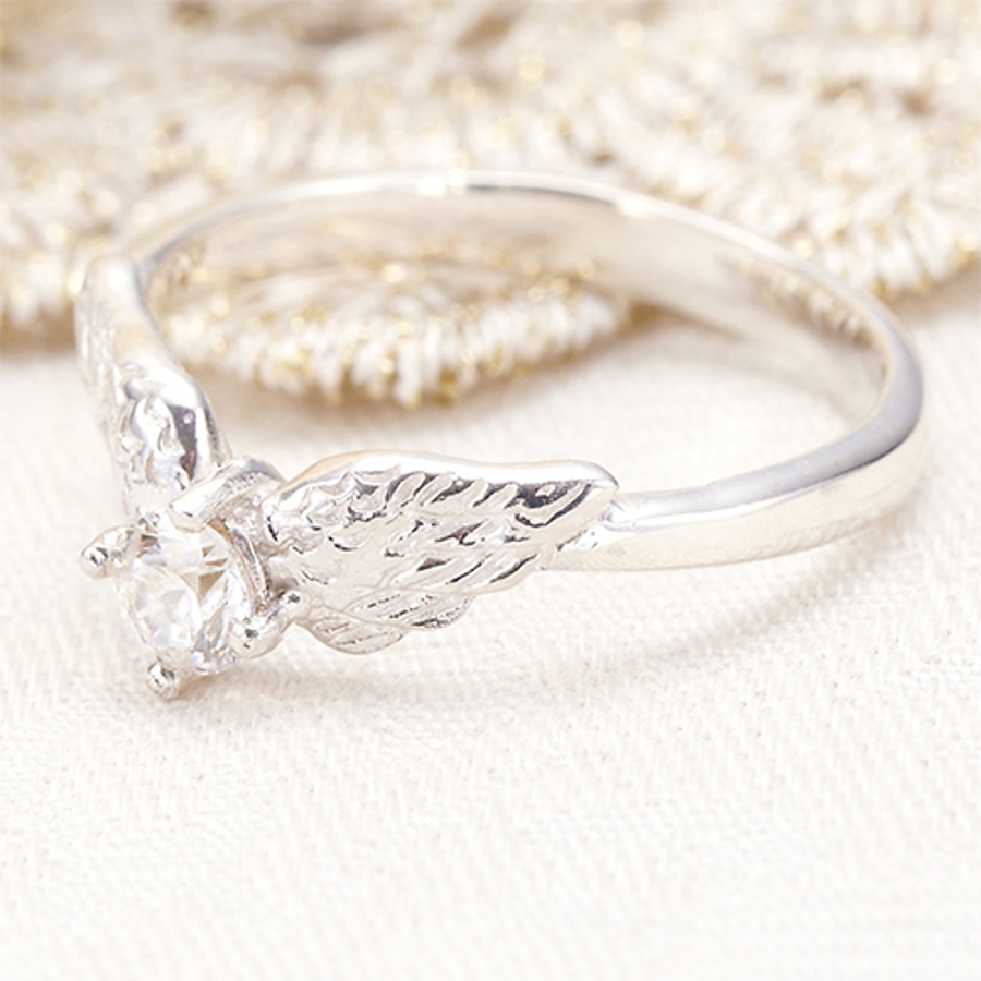 細やかな翼の彫が美しい、ジルコニアと羽のリング。