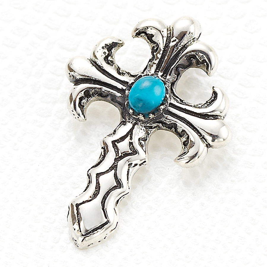 ユリの紋章で象ったクロスの中央に、鮮やかなブルーターコイズをセットしました。