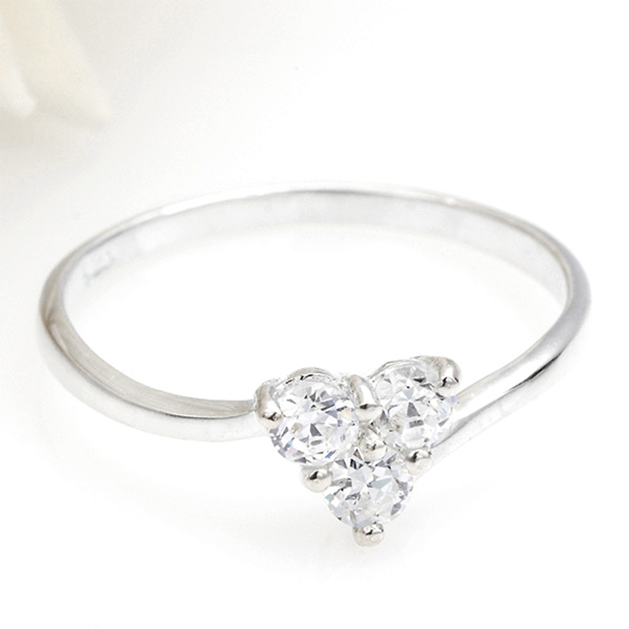 艶やかなシルバーリングの中央に3粒のラインストーンをあしらったリングです。
