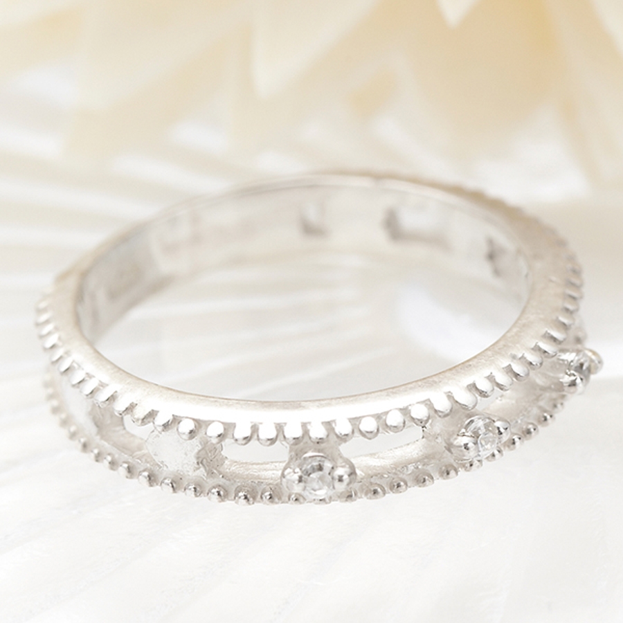 艶めくシルバー製のシンプルなミル打ちキュートリング。