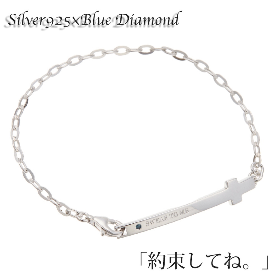 シルバー925製クロスチェーンブレスレット ブルーダイヤモンド 十字架