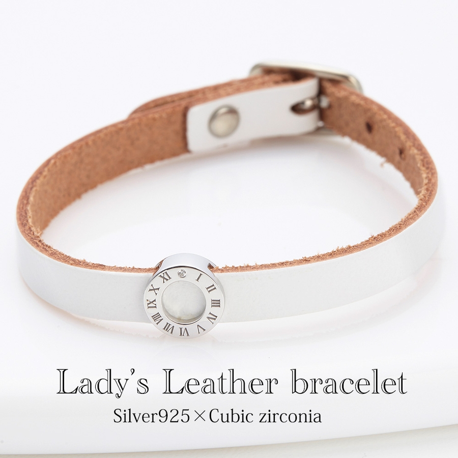 1粒キュービックジルコニアのリングレザーブレスレット シルバー925製 革