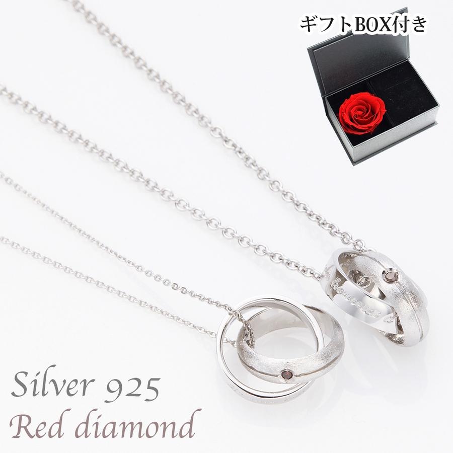 ちいさなベビーリングをツインで絡めたデザインのペアネックレス。