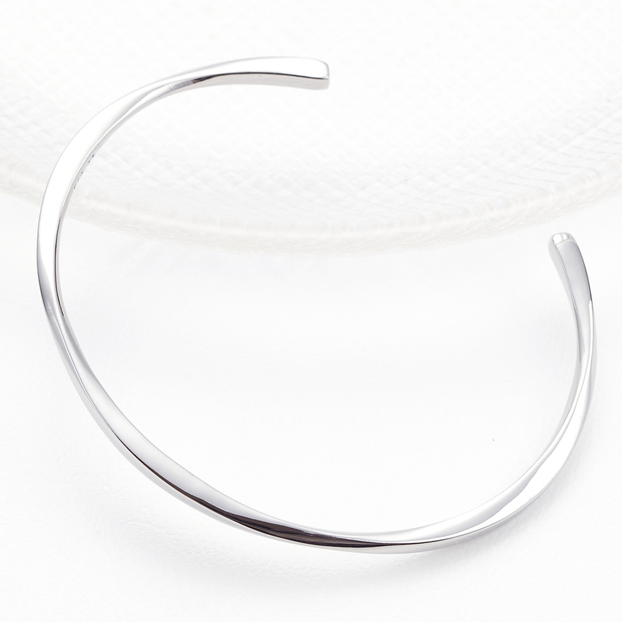 シルバーカラーが艶めくサージカルステンレス製のバングルです。